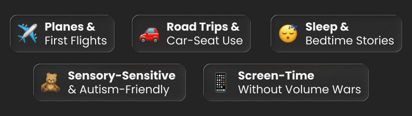 Like many families, we were tired of headphones that hurt, fell out, caused meltdowns during travel, or broke after just a week.