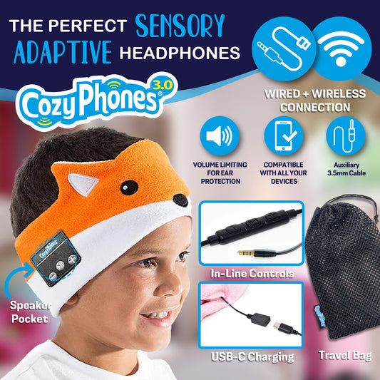 CozyPhones Sensory Adaptive Wireless / Wired Headband Headphones - Fox