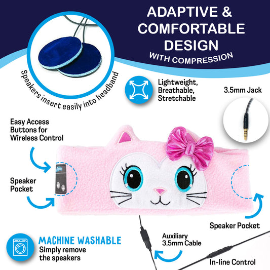 CozyPhones Sensory Adaptive Wireless / Wired Headband Headphones - Pink Kitty